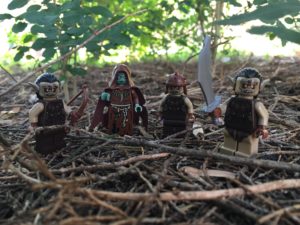 May 4, 2017 | Leave a comment Sure enough, a band of orcs led by a hobgoblin mage are spotted shortly thereafter, just as Lorec had predicted! The hobgoblin sees the group before they can attack, her eyes widening in fear, shrieking and alerting the orcs to their position! Melora sighs and begins to cast a silence spell at the magic user, but before she can utter the words, only the orcs remain as the hobgoblin disappears in a puff of smoke! The orc soldiers fight on, undismayed at being abandoned by their most powerful member. They fight with skill and ferocity, each one proving to be a formidable opponent… but in the end, the combined might of the the team of heroes triumphs over their primal fury. Once the battle is over, Melora and Lorec discuss how odd it is for a hobgoblin to be working with orcs, given their sordid history and mutual distrust of each other. With a growing sense of unease, the four brave champions continue their search deeper into the woods until night eventually falls and they must make camp once more. Visit us on Patreon to join the adventure!