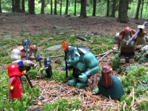 July 25, 2017 | Leave a comment The heroes are caught off guard and remain on the defensive as the ogres press their assault! Both teams appear to be evenly matched, with Melora facing off against the ogre mage, while Regnak and Lorec tackle the remaining two opponents! The skill and tenacity of the adventurers is on full display in this battle, as each one of them holds nothing back! Spells fly through the air alongside Lorec’s arrows, matching the ferocity of their adversaries! The dwarf is impressed despite himself, though he notices Areya is missing after he dodges through the legs of his surprised foe! Instead of joining her comrades, Areya wisely decides to rescue the tiny golden statue that was once her friend Joren. The elven cleric spirits the statue away from the brawl and begins to beseech her patron deity to break the curse and restore the young monk! It seems, however, that the curse which has transformed Joren cannot be broken by the young priestess… Though the battle rages on nearby, an inner peace fills Areya as she humbles herself and prays for the divine guidance she requires. Visit us on Patreon to join the adventure!