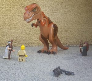 November 27, 2017 | Leave a comment The team attempts to engage the monstrosity, but Melora is barely able to cast a spell of concealment before the tremendous Rexasaurus lunges at Regnak, swallowing him in the blink of an eye! The heroes look on in horror as the terrible lizard turns toward Areya, spitting out a helmet and hammer as the only remains of the dwarf! Joren is easily gobbled up by the creature, while Lorec fills it with arrows and Melora uses her remaining offensive spells to weaken the Rexasaurus! Turning its hungry gaze on the cleric next, Lorec launches his remaining arrows in a valiant attempt to force the charging monster to change targets! Summoning all of her strength, the mage calls forth a giant spider that attacks with such ferocity it causes the weakened beast to release Areya from its jaws! Visit us on Patreon to join the adventure!